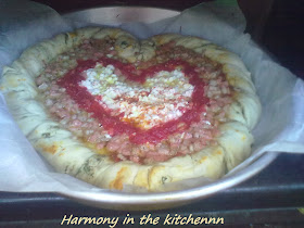 10.  Вътрешността се намазва с доматен сос, или кетчуп; поръсва се с подправките и обилно с настърган кашкавал.